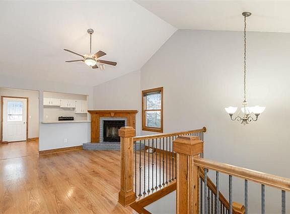 Very well maintained and updated half duplex in Olathe! Beautiful wood laminate floors throughout the home. Notice the elegance of the tread and spindles going up the stairs into the main living area. Wood burning fireplace perfect for cozy winter nights. Vaulted ceilings bring so much space and light! Updated bathrooms. Updated Kitchen with dining bar. Walkout to new deck GREAT for entertaining in the LARGE fenced in backyard! Finished basement room can be used as family room or extra bedroom with half bath and walk in closet. This is a must see!