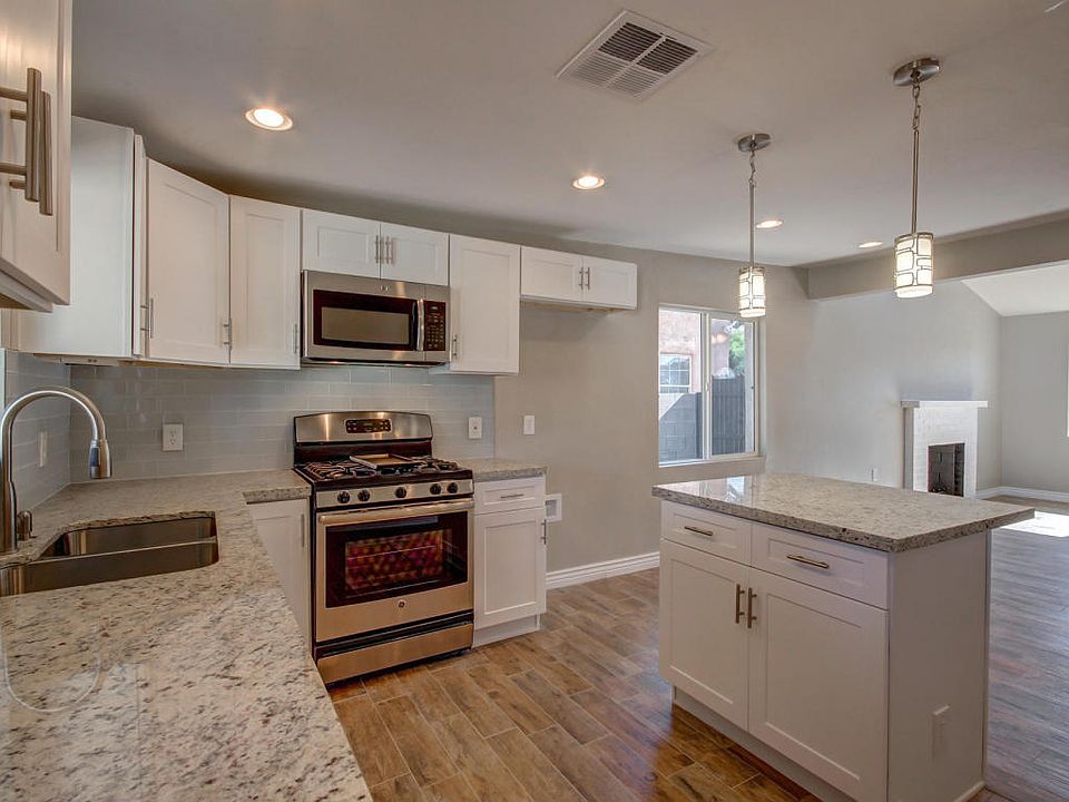 Great remodeled home centrally located close to U of A. 4 Bed/2 Bath with all new 2 tone interior paint and exterior paint. Open floor plan perfectly appointed with all new 6''x24'' wood looking ceramic tile flooring and new baseboards. Kitchen is complete with plenty of storage, granite slab countertops, and an undermount sink. New stainless steel appliances! Both bathrooms have new vanities, mirrors, and plumbing fixtures. Living room has gorgeous fireplace. New brushed nickel light fixtures and ceiling fans. New windows. Laundry closet has electric dryer hook ups. Detached 2 car garage with access from alley. Beautiful backyard features covered patio with deco rock, shrubs, and trees. This home will go quick, so come see it today. All this and it's not a short sale or REO, Agent/Owner.