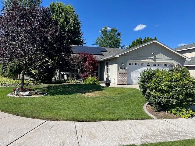 One level home - no steps anywhere! Lovingly maintained 3 bedroom/2 bath home on a quiet cul-de-sac. Bedrooms separated by main living area. Large Master with walk-in closet and private bath, and a slider opening to the park-like, private backyard. Newer luxury laminate flooring throughout, with ceramic tile flooring in kitchen. Kitchen & Master BR sliders lead to paved patio. Fully fenced backyard features concrete curbing, mature landscaping including flowering perennials: iris, hibiscus, roses, tiger lilies and more. Solar panels reduce utility bill dramatically, with excess energy "banking" for winter use. Entire south side of the home was re-roofed prior to Solar Panel installation 2 years ago. Storage shed/play house too! Comes with transferable Home Warranty, expiring in July 2025.