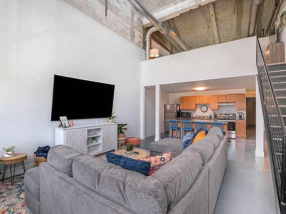 Queen bedOpen conceptRoku tvIndustrial feelComfortable couchKing size bedLarge closet