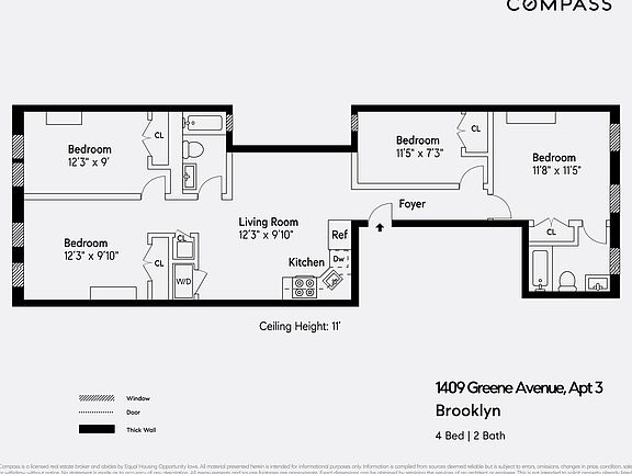 This is a 4 bedroom, 2.0 bathroom, apartment home. This home is located at 1409 Greene Ave FLOOR 3, Brooklyn, NY 11237.