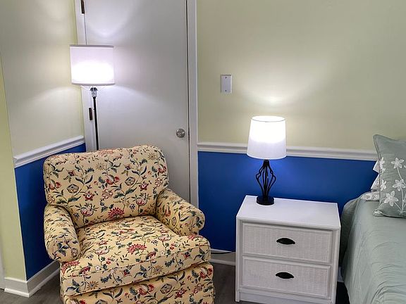 This newly renovated studio condo is besutifully furnished with a queen size bed, two nightstands, dresser, TV, compact dining table & two chairs plus two large arm chairs for comfortable reading or watching the tele. A European fridge, a microwave plus built in shelves will accomodate your needs in the make shift kitchen. The outdoor patio has a view of the woods and can accomodate your lounge chairs or any patio furniture. Water, sewer, electric and trash are included in the monthly rent. All you need is WiFi. Apply now! It wont last long! 12 month lease. Fairfield Harbour offers beautiful views of the Neuse River and is just 12 miles from the City of New Bern. It is an active boating community offering amenities everyone can enjoy including an 18-hole golf course, tennis courts, fishing and other outdoor pursuits. Membership to the Broad Creek Recreation Center is available to Residents of Fairfield Harbour and offers an indoor and outdoor pool, sauna, fitness room, arcade room, wi-fi and computer access, mini-golf, bike rentals, and more!