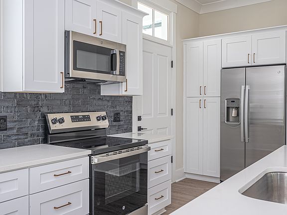 Open-concept planStainless appliancesLarge en-suite bathroomTiled glass-enclosed showerGorgeous kitchenPrimary suiteSolid surface counters