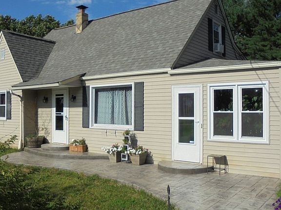 Comfortable Country Cape Cod - Conveniently Located. This 4 bedroom home has some updates - Bathrooms, Kitchen & Replacement Windows, etc. It has a Large Sunroom - perfect for plants and/or family room. The Kitchen has Lots of Cabinets, a Breakfast Bar & Dining Area complete with a Fireplace. The Full Basement is great for Storage & has a Workshop. The Back Yard is Fenced - great place for Pets.