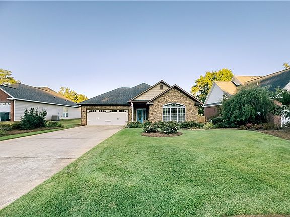 This beautifully landscaped, single-level home features a desirable split bedroom floor plan. The inviting living room boasts a vaulted ceiling, ceiling fan, and cozy gas log fireplace. The kitchen has tile countertops, a stylish backsplash, stainless steel appliances, and a spacious pantry. Formal Dining Room. The master suite offers a tray ceiling, ceiling fan, and an en-suite bath with double vanity, garden tub, separate shower, and a large walk-in closet. Two additional bedrooms, both with ceiling fans. Step outside to a covered back porch and fully fenced backyard—perfect for relaxation and entertaining. 2-car garage.