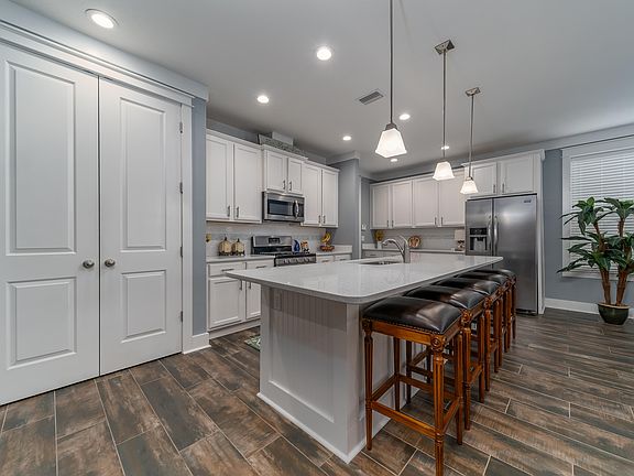CURRENTLY UNDER CONTRACT, SELLER ACCEPTING BACKUP OFFERS. Don't miss out on this move-in ready home with lake and park views in a waterfront community! The island kitchen has quartz countertops, large pantry, stainless appliances with a 5-burner gas range, glass backsplash and cabinetry with soft-close dovetail drawers, 42'' uppers and even a pull-out trash can. The living and dining area open to a large covered porch and private back yard. Gas is even run for a grill and fire pit! The main level master has a tray ceiling, huge closet and spa bath with walk-in tile shower and double quartz vanity. Upstairs features 3 bedrooms plus a loft.