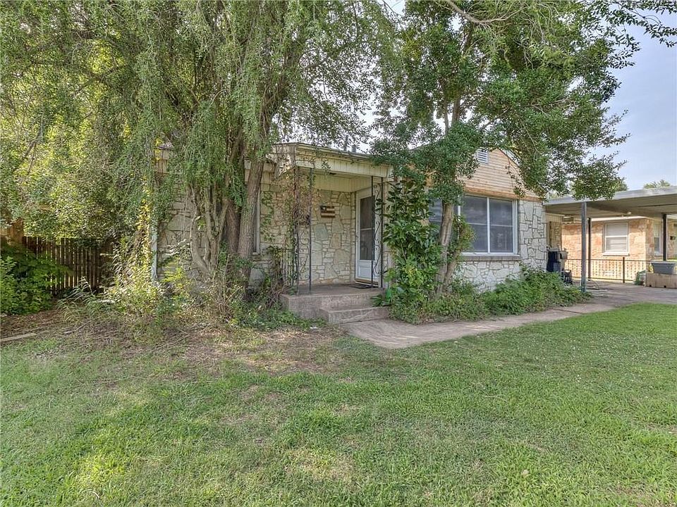 BACK ON THE MARKET - Don't miss out on this one!!! Cute Bungalow type home has been renovated 7 updated! 3 Beds/2 Baths - this one is sure to please. New Paint & Laminate Flooring. 2 car garage has been converted into a true Master Bedroom w/corner fireplace. Bonus room can be 2nd living room, formal dining room or office/playroom/homeschool room. Kitchen features alot of counter space & storage. Deck area on back Patio, great for enjoying morning coffees or evening sunsets. Spacious fenced backyard. Workshop for lawn equipment storage. 2 care Carport off where garage was previously. This is a GREAT opportunity for first time buyer or for an Investment Property. Close to all shopping & eating facilities that S OKC has to offer. Schedule your showing for this one - it won't last long.