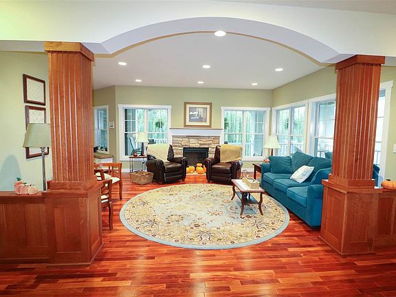 Make every day a lakeside vacation when you purchase this breathtaking four bed, three bath home with three car attached garage and private dock, on a half acre lot. Start your day with an invigorating swim in the one hundred thirty-five acre Fyre Lake, which is right outside your back door. When the weather outside makes an outdoor swim undesirable head to your pool room with 14' x 7' 39" deep heated Endless Pool for your morning swim. Flooring is professional grade gymnastic flooring and the ceiling is corrugated tin. A laundry room with a utility sink and a full bath have been conveniently located off the back foyer, which has a walk-out to the extensive stone patio. Nearly every room in this custom built dream home has awe-inspiring views of the lake and the generous family room is no exception. Family room includes a wet bar with glass-fronted Brazilian cherry cabinet and space for a full refrigerator. At the back of the family room is a bonus room perfect for...See Documents...
