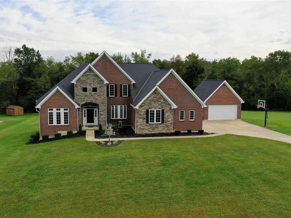 5 bedroom, 2.5 bath all brick home sitting on 1.5 acres, tree lined lot with creek. Custom built, 4 car garage (2 car attached, 2 car detached) composite decking, first floor master, 10 ft ceilings on first floor, 9 ft ceilings in basement, hardwood floors, granite counter tops, Geothermal (low utility bills) Desirable open floor plan, over sized garage, walk in closets, and extra wide steps. Kitchen includes granite counter-tops, SS appliances backsplash and a work station. Mudroom and Laundry directly off garage. A truly Unique home. Verify Schools