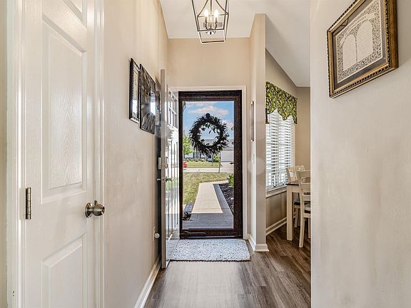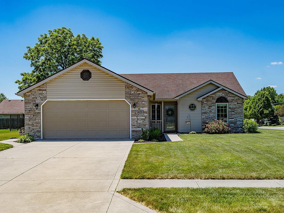 Welcome home to this beautifully refreshed & impeccably maintained split bedroom ranch on a generous corner lot boasting a vaulted great room & fantastic back patio—a true must see! Located in a quiet & peaceful area of the Timber Trace subdivision at the NE edge of Auburn, this 3 bedroom, 2 full bath home is sure to charm from the moment you arrive! Well cared for with obvious pride of ownership, the classic yet attractive exterior presents curb appeal with a mix of vinyl & stone facade, detailed landscaping & healthy lawn across 0.27 acres. Walkway leads to side entrance of attached 2 car garage with floored attic for better storage & main entrance with mini covered porch. Inside the new front & storm door you’ll find a bright & welcoming atmosphere complemented by on-trend updates including vinyl plank flooring, custom drapes, light fixtures, white trim & a neutral color palette—the perfect backdrop to your own personal style! Foyer with modern chandelier connects to eat-in kitchen featuring new paint & backsplash, newer black appliances, abundant cabinetry & pass-through window to living space. Enjoy meals with a front yard view in the dining nook with laundry beside garage access that has new upper cabinets & matching backsplash. Soaring beamed ceiling with fan connects kitchen & expansive living room which gets plenty of natural light from sliding glass doors to walk-out back patio, there’s even a ledge for accent decor! Inviting primary bedroom has ceiling fan, walk-in closet & en suite bath with hard surface vanity & tub/shower combo. You’ll also notice several octagon windows around the home that add a little extra character. Remaining 2 bedrooms are both comfortably sized with ample storage throughout & located in the opposite hallway alongside the main shared bath also with tub/shower. Head out to your own private back yard realm—the large patio was recently extended with pavers & 6’ white vinyl fence panels make this an intimate & relaxing space. Lush landscaping adds another layer of zen & privacy with evergreen bushes & flowers, plus a little paved walkway to a grill zone prime for summer BBQs. Of course the big yard has lots of room for outdoor fun & activities, but if you’re looking for more, the Bridgewater Golf Club & Cedar Creek are mere minutes away (ready to canoe anyone?)! Fabulous neighborhood great for strolling with easy access to downtown Auburn. Don't miss out on this amazing home!