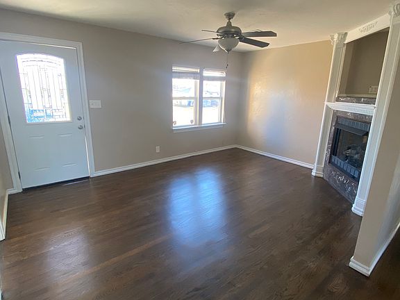 This is a beautifully remodeled 3-bed, 1-bath home. The kitchen features a dishwasher, large double sink with garbage disposal, a pantry, a fridge-water line hookup, gas stove, and plenty of cabinet space. The living room features a beautiful gas fireplace while each of the bedrooms have their own large closet. There is also dedicated space for a kitchen table and a convenient laundry nook. The bathroom has a new beautifully tiled shower-tub combo and a modern vanity. The majority of the home has beautiful original hardwood floors that have been refinished. The home also has a fully fenced backyard.