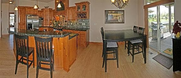This fully finished 4br/3bth rancher backs up to neighborhood park. Builder upgrades through-out. Main floor master suite complete with tub, double-headed shower, walk-in closet and view of park. Hardwood floor throught-out main floor, gas fireplace surrounded with built-ins. Kitchen with, gas range, Bosch dishwasher, pantry, granite eating bar, main floor laundry. Daylight basement with walk -out, two bedrooms, bath and built-in bar, plus work-out room.
