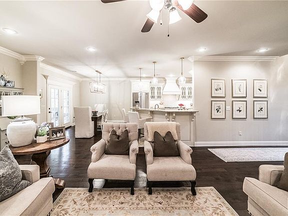 One owner custom home in highly sought after Angel Falls subdivision! This 4 bedroom home features custom crown molding, vaulted, beamed ceilings in dining room and master bedroom. Bonus / media room with tons of walk-in storage! Surround sound system wired throughout house and backyard. Enjoy the outdoor entertaining area with built-in grill, outdoor fireplace and speakers in the private backyard. Home backs up to wooded acreage. Just minutes to Walmart home office, Crystal Bridges and downtown Bentonville. Neighborhood connects to Coler Creek mountain bike trails.