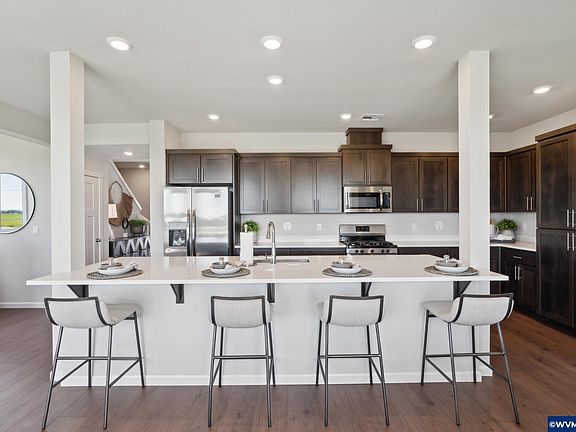 The Ashland floor plan features 4 large bedrooms, 2.5 baths (including an upstairs Jack & Jill), an open kitchen with ample storage, a large island, quartz counters, S/S appliances, and a gas fireplace in the living room. The primary suite includes a walk-in closet, soaking tub, and dual vanity. Front and rear landscaping with underground sprinklers and 6ft backyard fencing are also included. Homesite#31