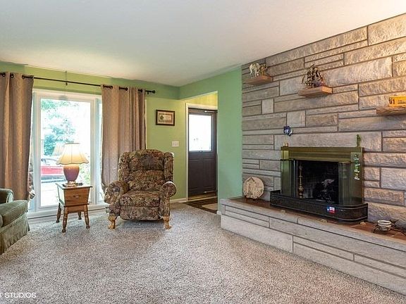 On a quiet dead-end tree lined street sits this inviting ranch. This home as many great features: two bathrooms and three bedrooms including a master suite; two limestone fireplaces: a gas one in the large living room and a wood burning one in the unfinished full basement that is just waiting your imagination. Generously sized kitchen with loads of cabinet and counter space along with a pantry. Off the spacious dining room is a four seasons room leading out to the beautifully landscaped and fenced back yard. Plenty of room to keep your things from the elements in the two-car garage or storage shed. All of this only blocks away the lake.