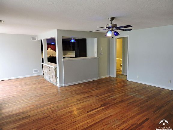 East Lawrence Rancher close to downtown. 2 bedroom 1 bath ,1 car garage all on a large lot with an alley access. 1 Outbuilding for storage plus a Garden room, Nice stone fireplace . New Carpet , new roof, All new interior paint.