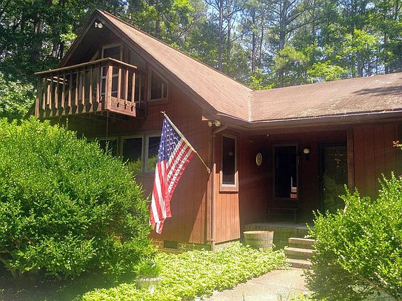Enjoy nature at your door from this privately located contemporary styled home situated on 5+ acres in the woods overlooking a pond; features vaulted ceiling and large windows with a deck across the rear; gazebo and dock located at pond shore make for a nice gathering spot or great kayaking; open floor plan with sleeping loft area; built-in bookcases; bedrooms are located on each end of house; 3 vehicle carport; "boatport" for storing nice size boat; heated guest house or workshop; water access to the beautiful Piankatank River includes dock, boat ramp and picnic area.