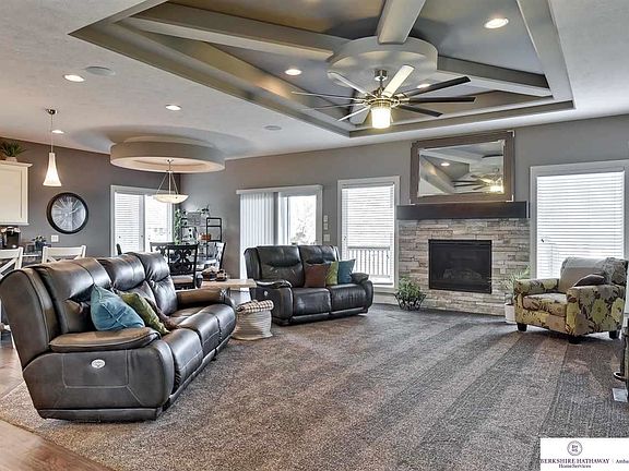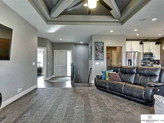 Fabulous floor plan! Fabulous location! Are you looking for a spacious ranch style home loaded with amenities? This is the one! Ceiling features, statement granite, plush carpet, beautiful wood floors, spacious rooms, sound system. Step into an open floor plan with warm neutral colors throughout. Kitchen features an eating area, WI pantry, gas stove! The covered deck was recently enlarged and a privacy wall and ceiling fan were added. Drop zone, & a laundry room with sink. Luxurious primary bath with dbl sinks, WI shower, linen closet, and a WI closet. Who doesn't love a ranch basement? Wait until you see the finished family room. There is a TV area, game area and the wet bar. You will love the bar location. It is off to the side not in the middle of the room. Bedroom #4, 3/4 bath and an office are located in the lower level. Walk out to the covered patio. The mature trees provide privacy. All this plus an oversized 3 car garage, sprinkler system, wd privacy fence & pro landscaping!