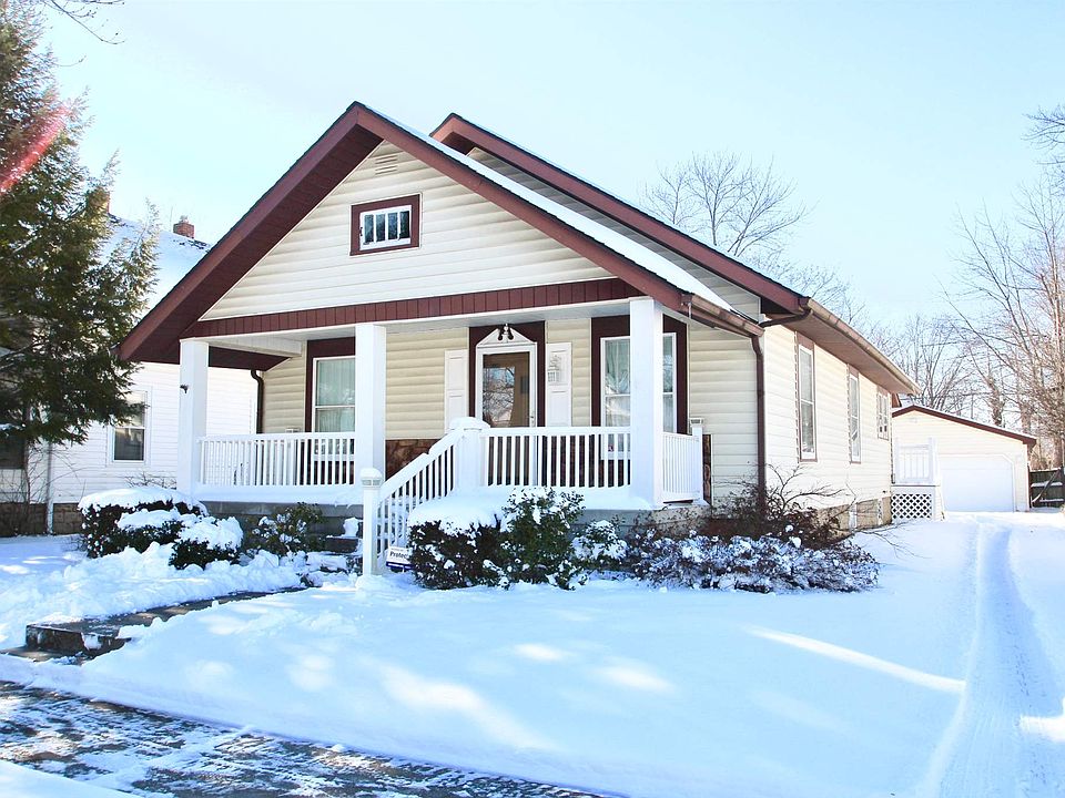 This 1919 built bungalow is situated in a desirable mature neighborhood and its curb appeal is the first thing you will fall in love with! Charming covered front porch as well as detached back deck allow for plenty of space to relax outdoors. Home features three bedrooms and two baths. Two bedrooms are extra large measuring 18x13 and 20X12. Living space is large with original hardwood remaining under carpet of original structure. Fully applianced kitchen has been updated with solid timeless cabinetry. Breakfast nook off kitchen could be used as a mud room, laundry area, or office space. Home has 2 adorable faux fireplaces. Two car detached garage.