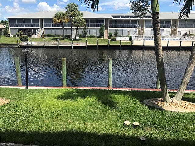 MORE PHOTOS COMING! Don't miss this rare opportunity for a 2 plus den 2 bath first floor pet friendly gulf access unit located walking distance to downtown Cape Coral. Updated tile in all living areas and lanai, newer carpet in bedrooms, updated kitchen with brand new stainless steel french door refrigerator and stove. Upgrading lighting in kitchen and master bedroom. Crown molding in living area makes a wonderful accent to this very comfortable condo. Lanai with roll down shutters over looks the canal and pool which is just steps away. All brand new plumbing in the unit as of 8/2017. Call for your private showing soon as this one won't last.