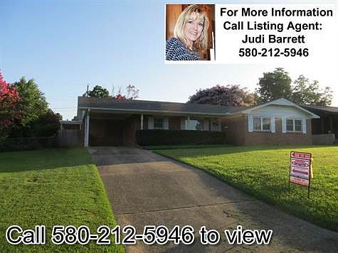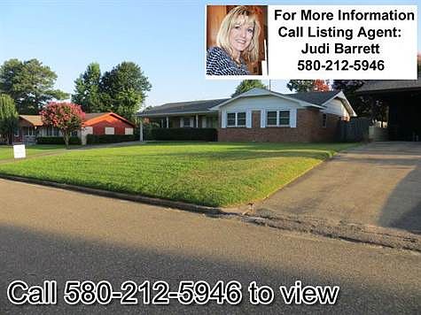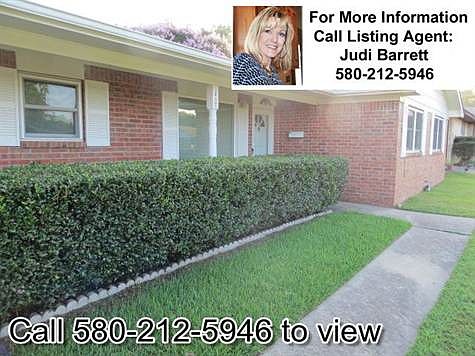 Located in Harris Acres close to all City Amenities is this Adorable 3 Bdrm., 1 3/4 Bath Brick Home... sited on 1 City Lot - Privacy Backyard Fencing. Enter this Open Concept Home w/a Spacious Living Room - Picture Windows allows for lot's of Natural Lighting, Kitchen w/ Bar Counter & Stainless Dbl. Range w/ Built-in Micro, Formal Dining w/ Deco Wall OPEN to Living Room... Bedrooms are Nice Size & Master Offers a 3/4 Tile Shower... Large Backyard Covered Porch w/a Storage Room & lot's of Covered Areas GREAT for Exterior Entertaining, Small Shed for Lawn Tools - Att. Carport w/ Side Entrance. Call Today (580) 584-SOLD (7653) for a Showing