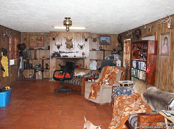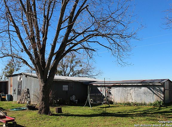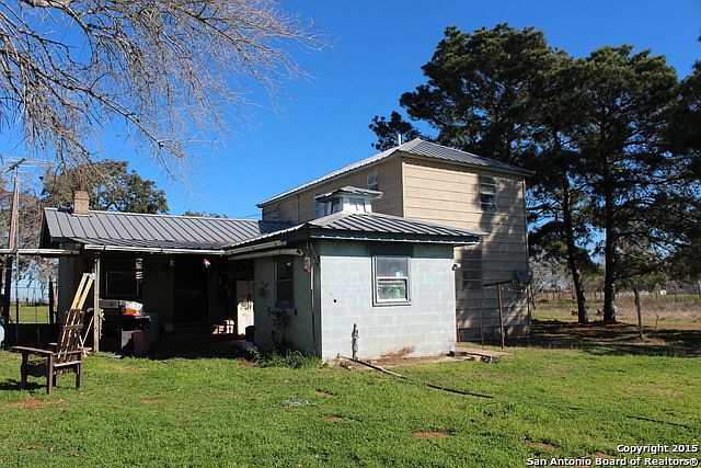 10 Acres in LaVernia ISD. Nice location on Sandy Elm Road. 3BR/2BA Older home, 2 story, open kitchen, fireplace in living room, lg. bedroom and bath downstairs, two bedrooms and one bath upstairs, detached carport, outdoor laundry room, Home needs some TLC. Beautiful Mature Pine Trees, and other trees in yard, 10 acres is mostly mesquite covered, 2 tanks/ponds, fully fenced. Two metal shops/barns w/ concrete slabs, green house area in one barn. Property is cross fenced.