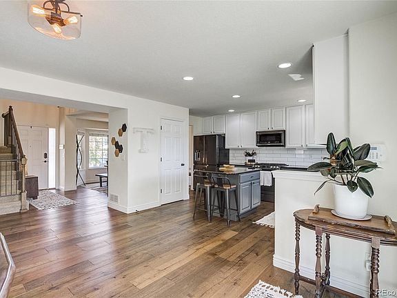You'll love this fantastic two-story home nestled on a private, cul-de-sac lot in Registry Ridge. As you enter in the large foyer provides a warm welcome to the well-appointed main floor that boasts brand new wide-plank hardwood floors, new oil rubbed bronze lighting, door hardware, and faucets and modern farmhouse finishes throughout. An entertainer's dream, this home has both a formal dining space complete as well as an open-concept informal dining space that flows into the kitchen. Sizable gourmet kitchen is sure to delight the home chef with its expansive countertops, generous island with counter seating, chic subway tile backsplash, abundant cabinets, pantry & black stainless steel appliances including a gas cooktop. The large living room features soaring ceilings, large windows and entertainment center with a cozy gas fireplace. Upstairs is a versatile loft that is ideal for a family room or home office. Substantial master hosts a large walk-in closet and the newly remodeled 5-piece en-suite bathroom complete with a double vanity, soaking tub & walk-in shower. Upper level is completed by 2 sunny bedrooms and full bathroom. The finished basement he finished basement offers two additional bedrooms beautiful guest bathroom with heated tile floors, and large bonus room with a fantastic bar. Enjoy the spacious backyard with expansive concrete patio, garden beds with irrigation and storage shed for all your tools and outdoor toys. Great location just 1 block to the community pool with nearby playgrounds and trails.