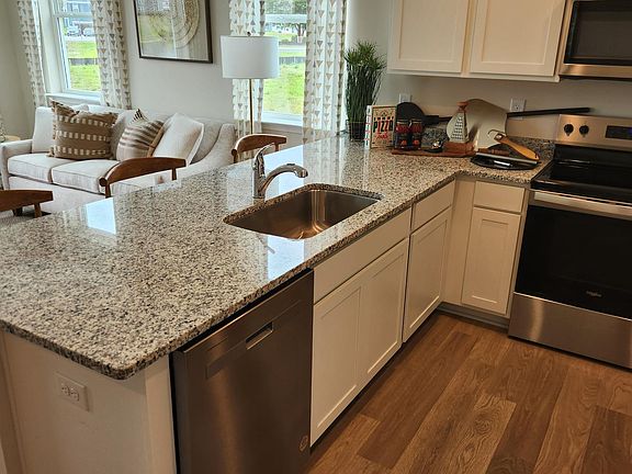 Discover 1409 Sugarplum Lane a new home in Salisbury, MD, located in the charming Heritage Trace community on a homesite with pond views. The Delmar, a 1500 square foot open-concept two story interior townhome, offers three bedrooms, two and a half bathrooms, and a one-car garage. As you enter from the front porch, the inviting foyer leads you to the conveniently located power room and the one-car garage. The home’s functional eat-in kitchen features bright white cabinet space, granite countertops, a spacious peninsula island with room for seating, stainless steel appliances and a pantry closet. The kitchen is open to the ample living room and dining area making family gatherings effortless. Upstairs, the spacious main bedroom comes complete with an oversized walk-in closet and a modern bathroom with a double bowl vanity, and generously sized walk-in shower. A linen closet is conveniently located in the hallway. Additionally, there are two sizeable guest bedrooms, each with plenty of closet space, and a guest bathroom with a vanity and tub shower located down the hallway. A functional upstairs laundry closet comes complete with a full-size washer and dryer. The home includes white window treatments and the innovative America’s Smart-Home® package that will give you complete peace of mind. Pictures, artist renderings, photographs, colors, features, and sizes are for illustration purposes only and will vary from the homes as built. Image representative of plan only and may vary as built. Images are of model home and include custom design features that may not be available in other homes. Furnishings and decorative items not included with home purchase.