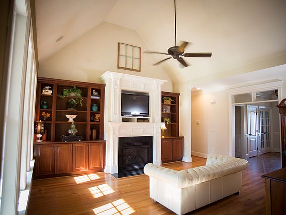 Beautiful custom built cul-de-sac home with numerous upgrades including professionally landscaped stamped concrete pool for summer fun and barn/with 3 lean to sheds and country porch with fire pit for cool fall evenings. Professionally landscaped yard with fencing and landscaped garden area with greenhouse. Genie Shelving in kitchen with GE Café appliances including gas top stove. Master bedroom/bath with surround sound and large over sized shower and Jacuzzi tub with Genie shelving pull outs in double sink area. Open floor plan in dining room and den with custom bookshelves and a gas fireplace. Built in ironing board with timer in double sink laundry room with hideaway closet and plenty of shelving. Tinted windows throughout the home provide additional home energy efficiency advantages including 7 ceiling fans. Huge bonus room with large walk in attic storage. Two car garage with custom built in shelving.