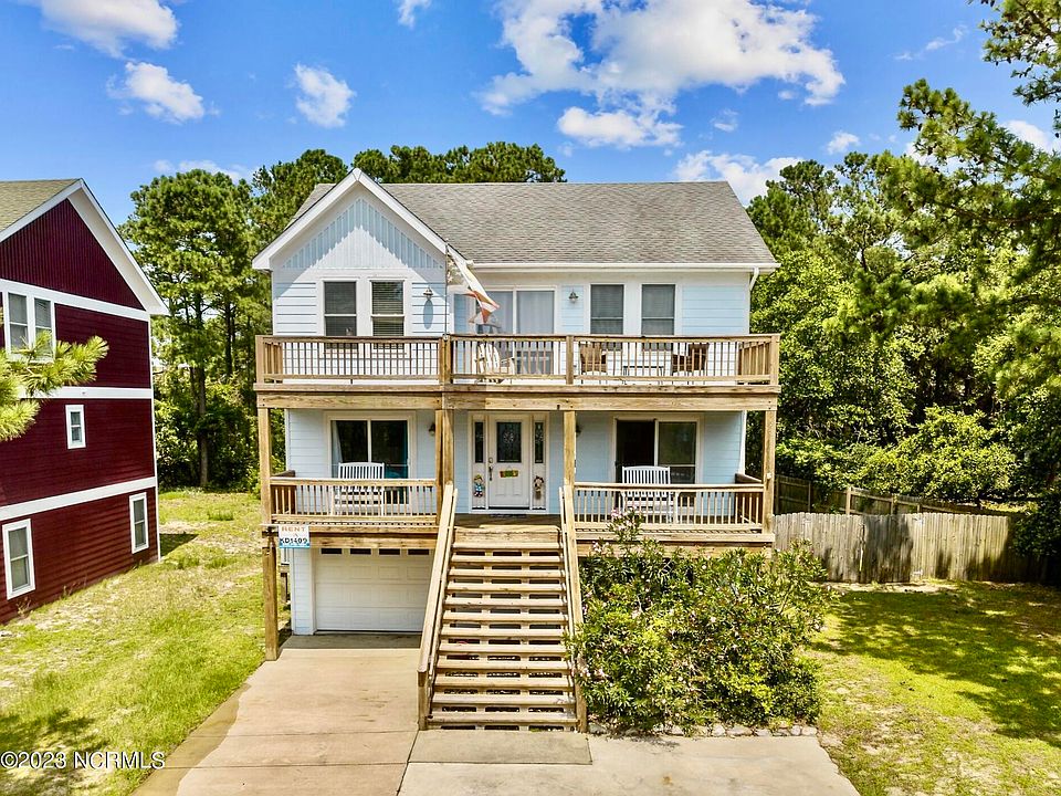 Beautifully maintained home nestled in a quiet cul-de-sac, just minutes from the beach, shops, restaurants, nature trails and so much more of what the Outer Banks has to offer. Make this your permanent residence, an investment or a second home. Designed for entertaining, this home offers both east and west facing multi-level decks. Soak in the sun on the upper levels or opt for the shade on the covered decks below. The fully fenced-in backyard is a quiet retreat featuring an in-ground saltwater pool, a deck for dining, a relaxing fire-pit area and direct access to a lower level entertainment/game room. On the mid-level you will find a bedroom with an ensuite bath, two secondary bedrooms, a Jack and Jill bath and a nice-sized laundry room with a mud sink. The upper level features an open concept design with a spacious kitchen, recently updated stainless steel appliances, large breakfast bar with plenty of seating, a dining area, a great room with built-ins, gas fireplace, vaulted ceiling and access to both upper level sun decks. A primary bedroom suite is conveniently located on this level as well. Home was recently equipped with indoor and outdoor coastal style furnishings & decor and is sold fully furnished. Don't let this one slip away!