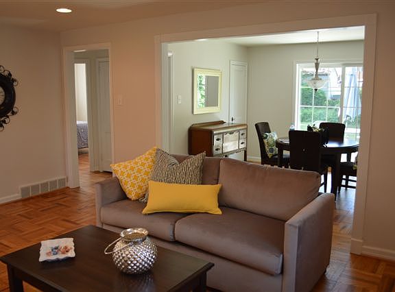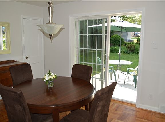 Beautifully renovated Cape featuring new architect designed front portico. Open floor plan living and dining room with refinished original hardwood floors. French door leads to a lovely patio and idyllic back yard. Updated electrical and plumbing. Full basement. Gas heat and Central Air. Move in ready!