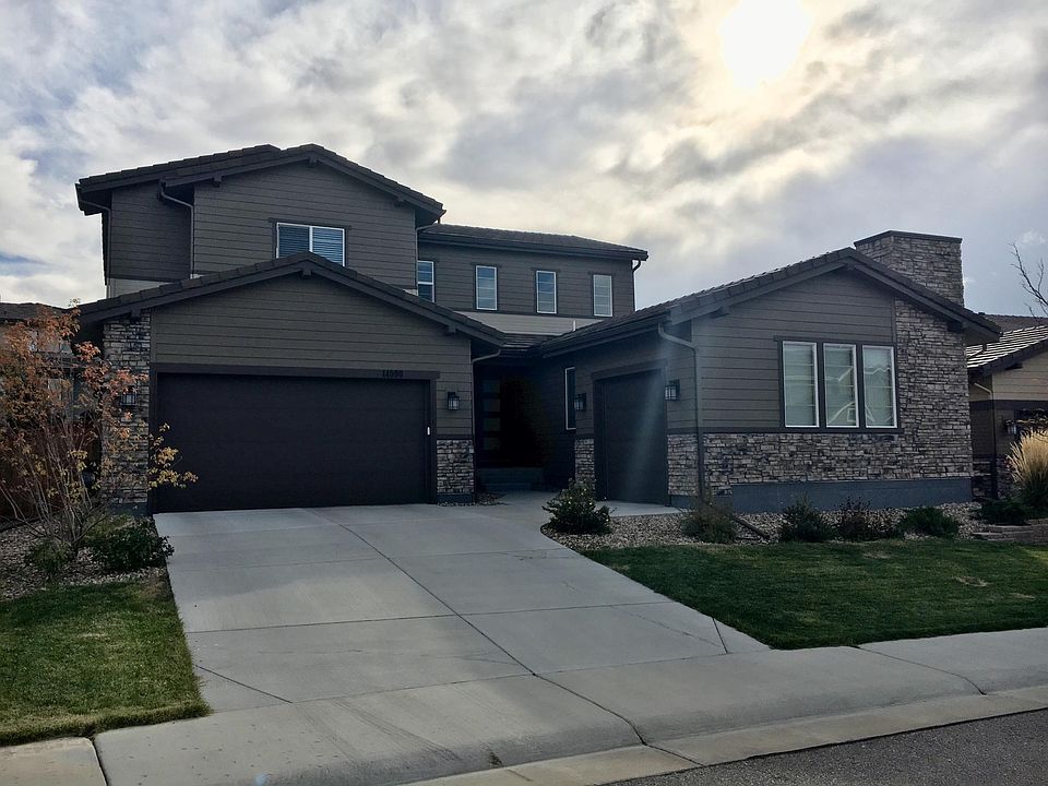 Executive home for rent in the Stepping Stones community located by I-25 and Lincoln. This two story home was built in 2015 and has over 2920 square feet with an additional 1298 square feet in the unfinished basement. Three car garage with lots of storage! Main floor has a spacious living room with a cozy fireplace with huge windows with custom shutters. Open floor plan with hardwood flooring on the main level. Kitchen has a huge island with granite counters and lots of kitchen cabinets. Large pantry. Stainless steel gas stove and upgraded refrigerator. Opens up to an outdoor patio for barbecuing and entertaining. Formal dining area next to the kitchen. Bedroom with a full bath is on the main level. Huge master suite with french doors is located on the second floor. Beautiful bathroom with a huge shower with dual heads. Nice walk in closet! Two additional bedrooms plus a nice loft that could be used as a study. Each bedroom has its own bathroom. Lots of additional storage in the basement. Nicely landscaped fenced in back yard . Modern light fixtures with upgraded window coverings. Swimming pool and park is close by. Douglas County Schools. Close to restaurants, hiking trails, and shopping. Owner pays for trash and sewer. Tenant responsible for utilities, water, and yard maintenance.
