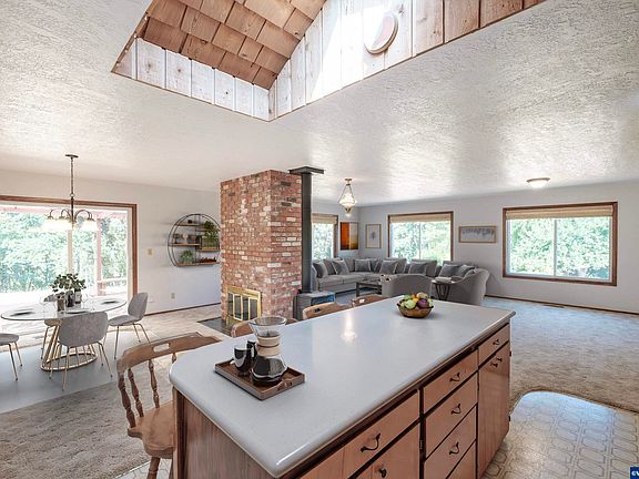 Charming single level home on 5.92 acres has perfect blend of comfort & nature.This one owner gem boasts open floor plan w/large light/bright new vinyl windows, fresh int.paint, & updated bathrooms w/tile showers.Kitchen shines with skylight,island & pantry.Primary bedroom has huge WIC with flex space.Property features combination of open pasture & trees that surround a serene pond.Unwind under covered back deck enjoying valley views.60x30 shop w/ 30x30 having concrete floor.Carport w/extra rm/shop attached
