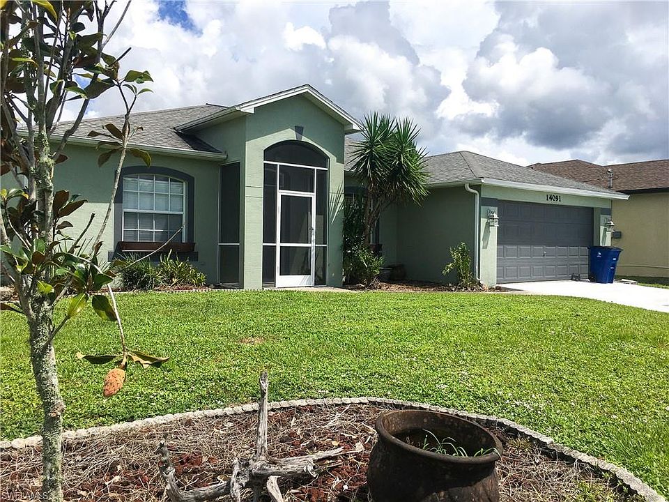 Beautiful, spacious and comfortably located, this 4 bedroom(+den) 3 bath home is a stage ready to be set by you. Brand new roof completed in Dec 2020. Light wooden floors and plenty of windows make walking through this home feel like a breeze. This perfect location brims with shops and restaurants just a quick trip away on Lee Blvd. Built in 2000, this 2,111 sq ft home is situated on a double lot. This will give you plenty of options down the road like extra recreation space or to build another home! Placed in a clean and quiet neighborhood in Buckingham, Florida where sunsets are show-stopping. This home includes a 2 car garage, long paved driveway, a spacious shaded rear lanai AND THE LOT NEXT DOOR! Don't hesitate to call today. 14091 Cerrito St. is waiting for you!