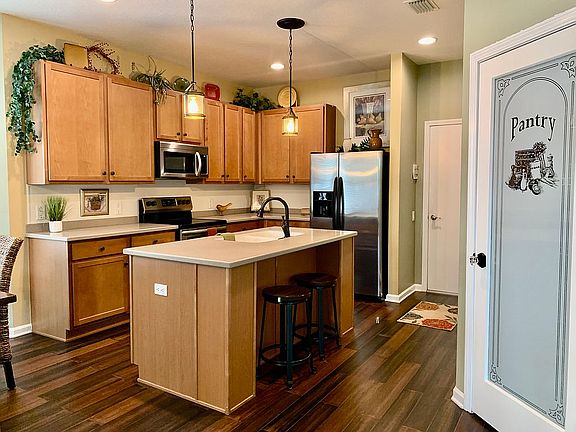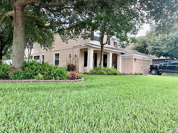 Two story home on a large beautifully landscaped corner lot. Features 4 specious bedrooms, 3.5 bathrooms, an office, formal living, formal dining room, as well as a large kitchen and family room. You will love the screened-in back lanai as well as the backyard with privacy fencing. This home was recently repainted and updated. As you enter in the front door you will notice generous amounts of natural light and the high, vaulted ceiling. The home is beautiful inside and out. The community has a large pool, fitness center, and park.