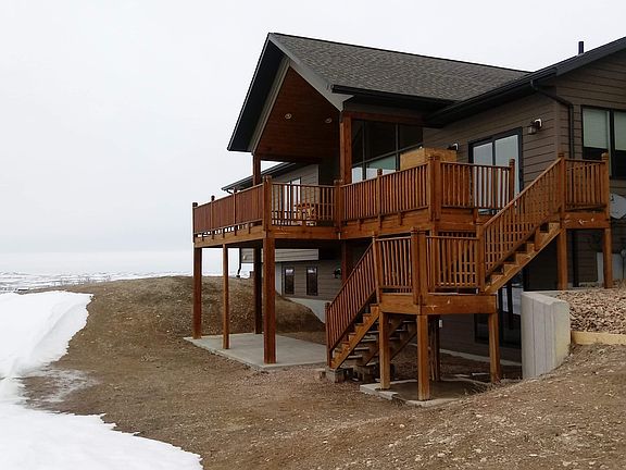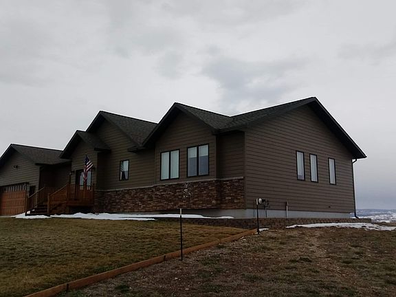 This beautiful 3,798 sq ft ranch style home with modern finishes is located on top of a ridge overlooking Piedmont Valley. On 3.5+ acres, this custom home offers an open-concept kitchen, dining and living area that includes hardwood flooring, custom cabinetry, quartz countertops, stainless steel appliances, a walk-in pantry, as well as a 1/2 bath. The main living area also features vaulted ceilings with floor to ceiling windows that overlook a spacious deck with a built-in grilling area and incredible, breath-taking views! Down the hall from the main living area is a master bedroom that features a barn wood tray ceiling and sliding doors that lead to an on-suite bathroom that includes a tiled walk-in shower. A large laundry room, two additional bedrooms and another full bathroom including a shower+tub combo complete the main level. The walk-out unfinished basement is awaiting your special touch. The attached 2-car garage leads into the home through a mudroom. There is a 30x36 detached garage with two attached lean-to's. Other amenities include: underground water sprinkler system, sod, landscaping, an energy-efficient Geo-Thermal system for heating and cooling, an underground dog containment fence and an easy 8-mile access to either Interstate 90 or Rapid City. Take a walk down the path to a private dock where you can enjoy some fishing. This land and home is nothing but spectacular - you will not be disappointed. Come take a look yourself. Please contact Danilee at 605-490-2629 or Shawn 605-645-7649 for more information or a private showing.