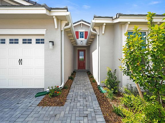 Enjoy outdoor Florida living at its finest on the expansive covered patio, paved with stylish gray brick, overlooking a lushly landscaped yardperfect for entertaining or quiet moments. With no rear neighbors immediately behind, you'll appreciate the serene and private backyard space.