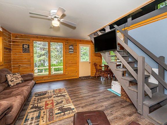Gorgeous Storybook Log Cabin on Lake Catherine! Sitting on 1.81 acres of land with 225' of frontage, and an absolute serene property, this 1 bdrm (loft) traditional style log home was built in 1998. Entirely updated and accented with natural wood interior finishes, with windows and deck facing the lake. The main floor has a generous living room, full kitchen, doors to back deck, a nice bathroom, and stairs up to the loft sleeping area. All furnishings and everything in home included. Also included is an expensive dock, paddleboat, canoe and kayak. Though the lake is lower than normal, there is good fishing with bluegill being plentiful. Located in the heart of the recreational northwest, right on the edge of Solon and Barnes, this cabin is in the perfect location to really enjoy summertime!!