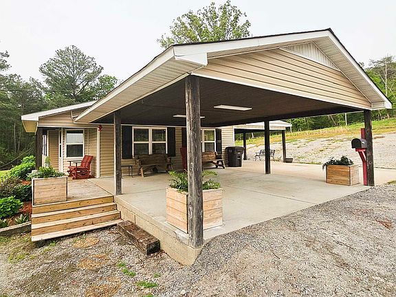 Nestled on a stunning 9.1-acre hilltop, this beautifully renovated retreat offers breathtaking sunsets and frequent deer sightings. Fully remodeled in 2018, the home boasts new windows, siding, flooring, and tile, alongside striking custom wood ceilings and a semi-open floor plan with spacious rooms. Vinyl plank flooring flows throughout, while the primary suite features a luxurious 5x5 custom-tiled, handicap-accessible shower. Enjoy the convenience of two attached carports accommodating three vehicles, a wraparound porch, a large mudroom with guest bath access, a coffee bar, pantry, tankless water heater, and a storm room.Located just a short drive from Muscle Shoals,Decatur,and Huntsville.