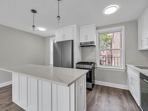 This beautifully updated 2nd floor unit features brand new engineered flooring throughout, a modern open-concept kitchen with a stylish island, and sleek stainless steel appliances, including a refrigerator, microwave, dishwasher, and gas range oven. The kitchen is complemented by quartz countertops. The bathroom has been tastefully upgraded with new tile and the unit boasts fresh electrical updates. Move in ready and designed for modern living