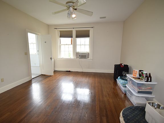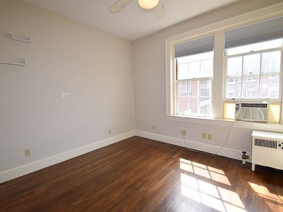 Top floor two bed / two bath located in vibrant Washington Square. Building has a peaceful courtyard, professional management, and is located close to the C and D branches of the Green Line. Walk in to the bright large living room which sets the tone for the rest of the unit, with built-in shelving and beautiful fireplace. Stunning hardwood floors. Both full bathrooms have been nicely updated. Large eat-in-kitchen with breakfast nook, high-end Viking gas stove, plus a separate formal dining room. Master suite with master bathroom, and the second bedroom has a large built-in shelving unit.