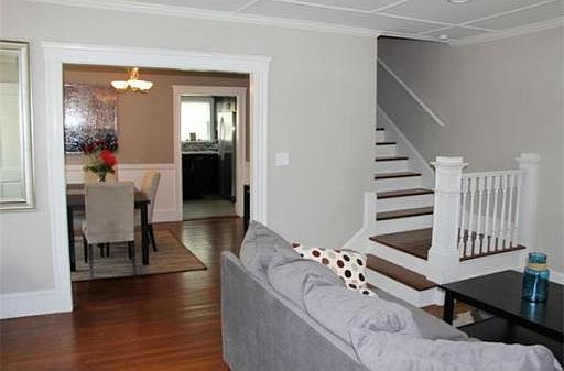 Gorgeous restoration to this spacious townhouse. Recessed lighting, oak floors, and finished third level. Granite counters, beautiful new cabinets, and new stainless appliances. Very pretty living room, with large window bench and lots of windows in sun splashed living and dining room area. Beautiful tile bath on second floor, good size bedrooms and closets. Unit includes two parking spots. This unit has single family feel to it.