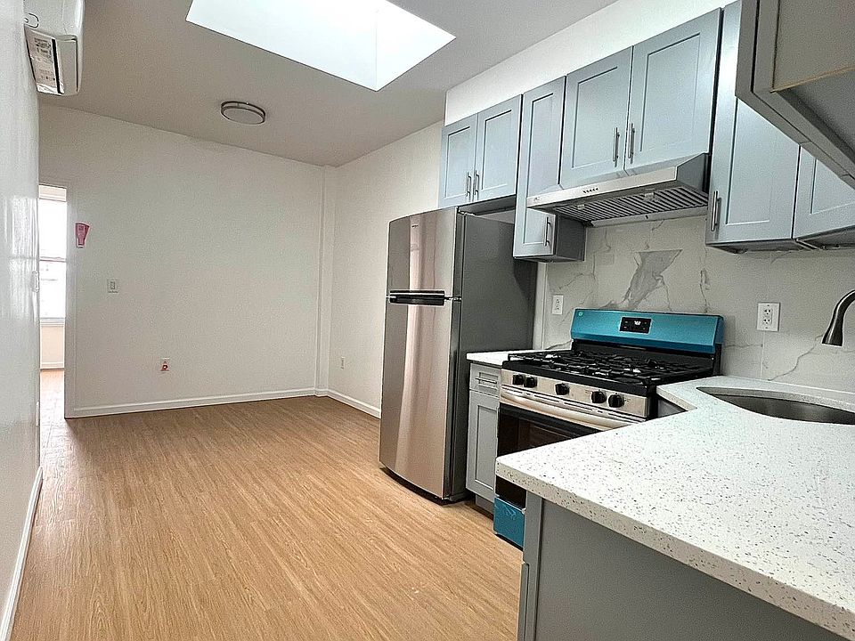 Immaculate 2 bedroom/ 1 bath apartment Dishwasher, Washer/ Dryer in- unit Hardwood floors and sunshine throughout Skylight in living room Kitchen open to living room Stand up shower in bathroom One time non- refundable Pet Fee: $400 One- time non- refundable Application fee: $20 One month security deposit