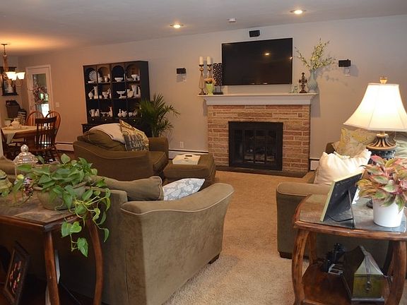 Beautiful stone front home situated on a .92 acre city lot! This incredibly well maintained & beautifully decorated 3 bedroom, 2 bath home offers a modern dine-in kitchen with maple cabinets, pantry, dinette, and patio access. Spacious living room opens into a formal dining area with an adjoining family room. Stone accent wall sunroom offers a great place to enjoy summer evenings with a view of the backyard. Hall bath with dual sink vanity and wall of built-in cabinet storage.