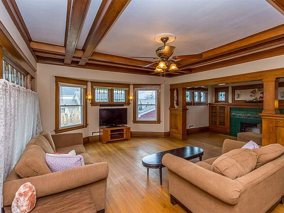 Beautiful 1910 Arts and Crafts style home brimming with charm. Pull into one of the FOUR garage stalls and climb the steps to the front porch you've always dreamed of. The fine craftsmanship of history can be yours - original oak floors, built-ins & woodwork: carved wood ceiling beams, lintels & solid wood doors. The artistic glasswork delights: leaded & stained glass windows, original tile fireplace, chandelier & 15 original art deco sconces.