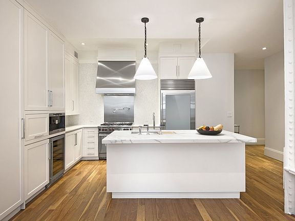 Superior finishes and large, airy living spaces are the hallmark of this spectacular, mint-condition two-bedroom, two-and-a-half-bathroom condominium in a historic Flatiron District building. Spanning 1,791 square feet with 10 1/2-foot ceilings and extra-large windows in nearly every room, this refined home is a tranquil escape from the city below. Fine details, such as handsome millwork and tall doorways, convey a sense of sophisticated elegance, while 4-inch plank hardwood flooring and an original riveted I-beam add warmth and character. The oversized open-plan great room with built-in speakers and kitchen offer plenty of room for living and dining with an ideal flow for entertaining. In the gracious kitchen, you'll find a full complement of appliances -- hooded six-burner Wolf range with pot filler, glass-front Sub-Zero refrigerator, Bosch dishwasher, integrated Miele coffee system and wine cooler -- surrounded by custom hand-painted cabinetry. A white marble island provides a stunning centerpiece and convenient prep space in one. Two large, split bedroom suites provide spacious and serene sleeping areas, as well as automated shades. In the master, a huge custom walk-in closet is joined by an en suite five-fixture bathroom featuring a rain shower, free-standing tub, heated floors, dual-sink vanity and walls covered by Dolomite Corina. The second suite includes two closets, an en suite bath and a convenient alcove. Two additional closets, a luxurious powder room and an in-unit Bosch washer-dryer complete this impeccable Flatiron condominium. Set on the corner of Fifth Avenue and 21st Street, in the heart of the Ladies' Mile Historic District, 141 Fifth Avenue is a magnificent building richly embellished in the Beaux Arts style. Built in 1896, the limestone and terra cotta masterpiece includes a rounded corner bay topped by a distinctive copper cupola, making it one of the most attractive structures in the district. Today, residents of the beautifully converted, pet-friendly condominium enjoy full-time doorman/concierge service, storage and a lovely roof terrace. Located in the Flatiron District with direct proximity to Chelsea, NoMad, Union Square and Gramercy Park, the building is at the epicenter of vibrant Manhattan living. The culinary delights of Eataly, Whole Foods and Michelin-starred Eleven Madison Park, The Clocktower and Gramercy Tavern are within easy reach. Madison Square Park and Union Square offer superb outdoor space plus a year-round calendar of events and greenmarkets. Access to transportation is excellent with R/W and 6 trains nearby.