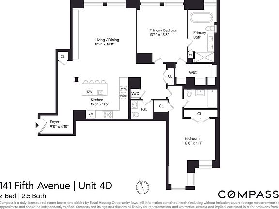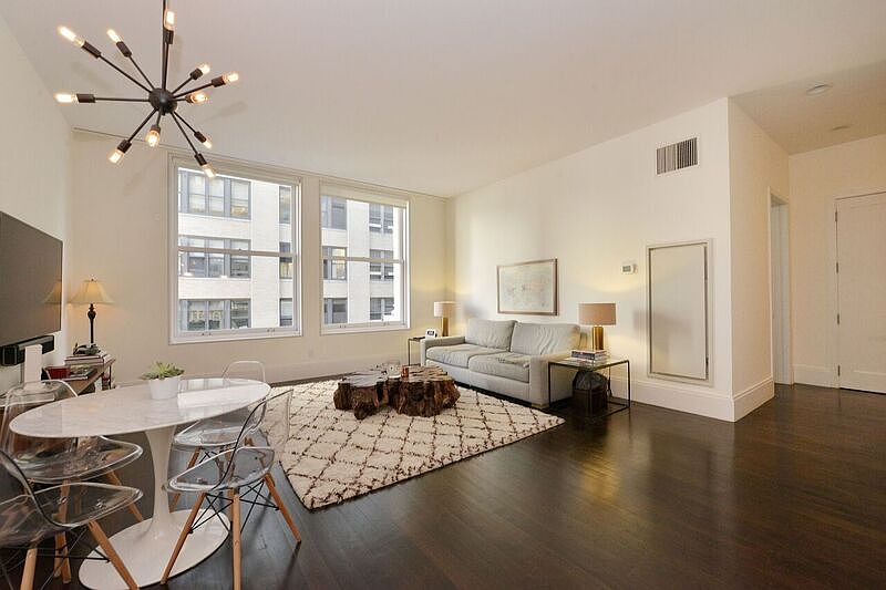 Residence 6D is located in the historically landmarked, Beaux Arts 141 Fifth Avenue. This spacious two bedroom, two and one half bath loft apartment offers privacy and exclusivity in the heart of the Flatiron District. Totaling 1759 sq ft this home is flooded with northern light, has 11-foot ceilings, and a split bedroom layout. The open kitchen features custom millwork cabinets and glass-tile backsplash, Cucina marble counters, 6-burner Wolf range, and glass-door Sub Zero. A large master suite features a custom walk-in closet, windowed bathroom with shower stall, Waterworks freestanding tub and fixtures, and custom mosaic bathroom floors. The 2nd bedroom also has an en suite bathroom with great closet space. Other highlights include 4-inch solid walnut floors throughout, custom wood-framed fluted glass doors, a Bosch washer/dryer, and central air-conditioning and heat. With only two neighbors on your floor the building has a very intimate feel. Built in 1896, and fully restored in 2007, this Beaux Arts style loft condominium has a beautiful roof terrace and a 24-hour doorman/concierge service. Centrally located in Flatiron - transportation, shopping, and fine dining are at your fingertips.
