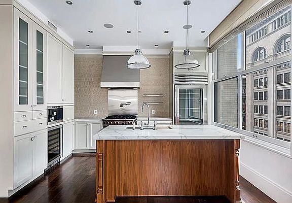 Prime Location. Fifth Avenue Views. Welcome home to this gracious 2 Bedroom, 2 Bath plus Den residence offering exquisite finishes, privacy, and exclusivity in the heart of the Flatiron District. This beautiful apartment features an expansive living room and a fantastic split bedroom layout, soaring 11 ft ceilings, lots of closet space, oversized windows, abundant light, and rare unobstructed views of Fifth Avenue all the way to the Empire State Building. The kitchen has English hand-painted style custom cabinets and a custom glass-tile backsplash, Pietra Cucina marble counters, a walnut and marble island with hand-turned balusters, a 6-burner Wolf range (complete with a water spout for pots), glass-door SubZero, and a built-in Miele coffee system. The expansive master suite features a huge walk-in closet and a gorgeous bathroom with custom mosaic bathroom floors, split shower stall, Waterworks accent freestanding tub. The second bedroom is equally spacious, and the Den can be used as a media room or an extra bedroom/nursery. 141 Fifth Avenue is the former Merchant's Bank of New York and one of the most beautiful Beaux Arts buildings in the prime location on 5th Avenue and 21st Street. 141 Fifth Avenue's ornate terra-cotta detailing, curved corner, and cupola roof, preserve this classic 1897 building as a striking landmark in lower Manhattan. Converted into condos in 2007, this intimate, 38 unit, 12-floor building is fully staffed with a 24-hour concierge, attended lobby, and doormen. The fully landscaped roof deck is amongst the coveted treasures that residents here enjoy. 141 Fifth Ave is just a few blocks away from Madison Square Park, Eataly, the infamous Shake Shack, Eleven Madison Park, Ilili, A Voce, Ace Hotel, The Nomad Hotel's restaurant, the new Clocktower restaurant in the Edition Hotel, and so much more.