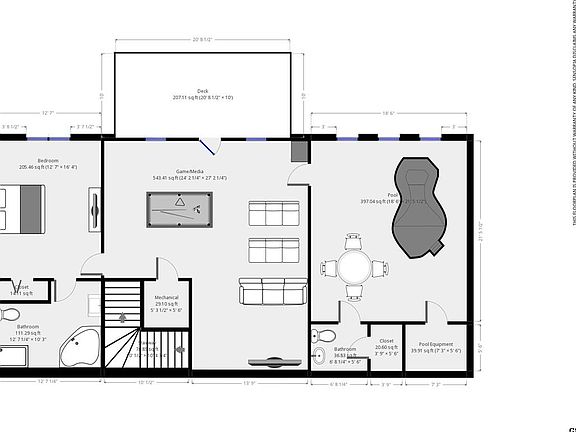 - W/D Connection, Ceiling Fan(s), Furniture, Great Room, Whirlpool, Recreation Room, Large Master Bedroom, Private Pool, Media Room, Inside Inground Pool