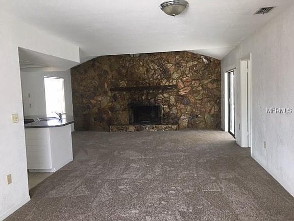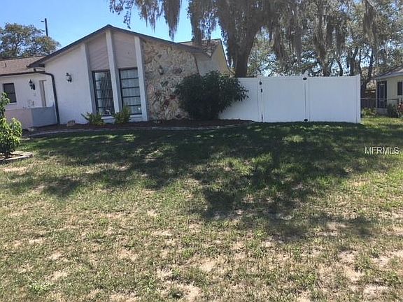 This beautiful home with a courtyard entrance and a spectacular pool has an impressive open floor plan that is perfect for entertaining friends or relaxing with family. The sunken living room can be used as a den and the great room with the fireplace wall give it a warm welcoming character. The kitchen is open to the great room for a modern look and the hall bath has been upgraded featuring a skylight that brightens the listello tiled shower even on a cloudy day. Both of the closets in the bedrooms are lined with cedar to ward off pests. The swimming pool has a screened enclosure off of the covered lanai so you can enjoy the summer sun and shade alike. The ample garage space leaves plenty of room for two cars and a work bench. Sitting on a large corner lot, you are just a short drive across the road from the Heritage Pines Country Club making this a perfect home for the golf enthusiast. Conveniently located near US 19 for an easy commute to local shops and dining.